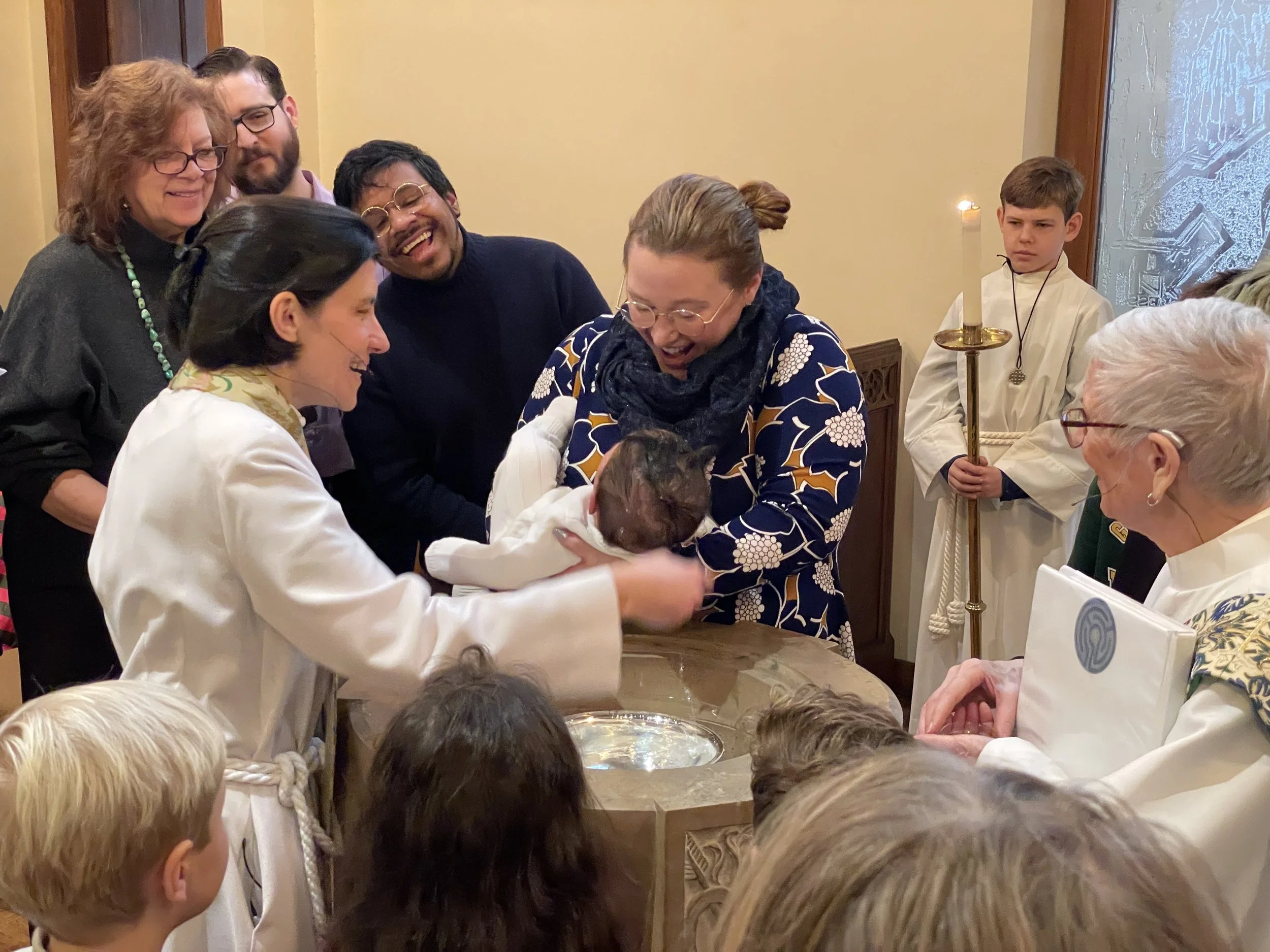 Holy Baptism is full initiation by water and the Holy Spirit into Christ’s Body the Church. At Baptism, we are "marked as Christ's own, forever." Baptism takes place within the Eucharist as the chief service on a Sunday or other feast, so that the whole community can be present and participate in the celebration of a new member's initiation into the life of faith.